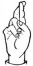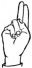 На ћирилици написано КОСТАДИН МИХАЈЛОВИЋ састоји се из 18 слова [?]. Исписано ћириличном једноручном азбуком за глувонеме:
